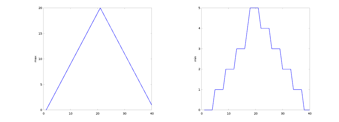 From the figures, we see that the maximum value rises and falls perfectly smoothly, while the minimum seems to be a step function. Neither result seems particularly likely, so either there’s a mistake in our calculations or something is wrong with our data.